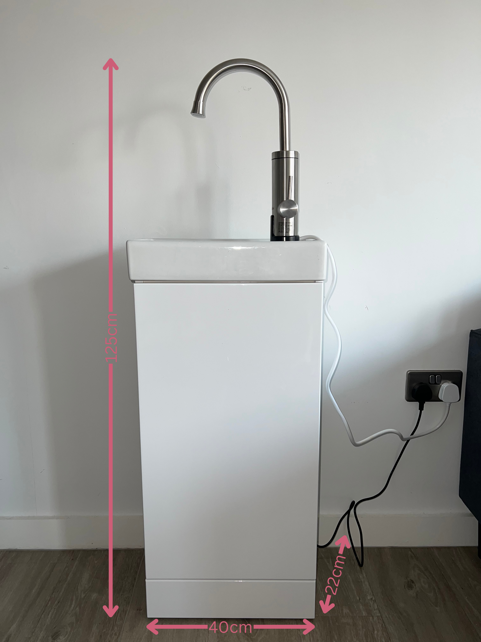 Our Slim Portable Self-Heating Sink Unit is perfect for those requiring hot, running water on demand, in situations where traditional plumbing is not feasible.